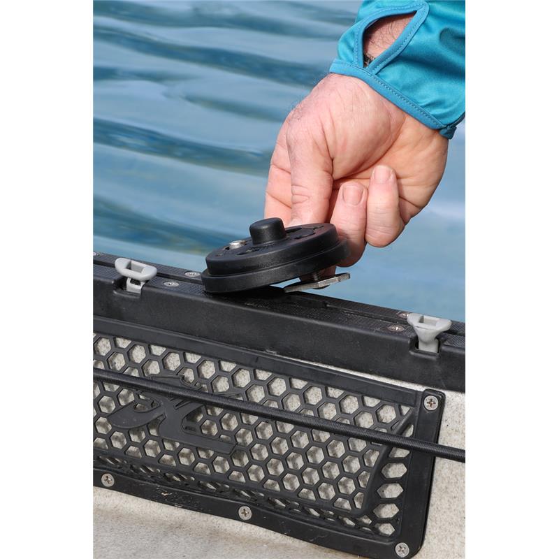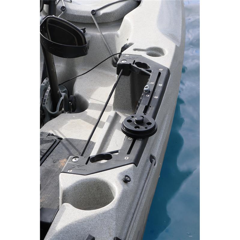 Acrescenta o nosso TracLoader Gunnel Track na horizontal, e depois fixa facilmente os maiores detectores de peixes, porta-canas e transdutores vivos através do sistema RAILBLAZAHEXX™ sem fazer mais furos.