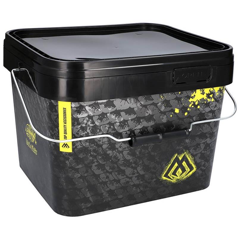 Balde universal para iscos e engodos. Feito de material resistente, está equipado com uma tampa e uma alça em metal. A sua capacidade é de 17 litros, e a sua forma rectangular facilita o seu armazenamento no porta-malas do carro.