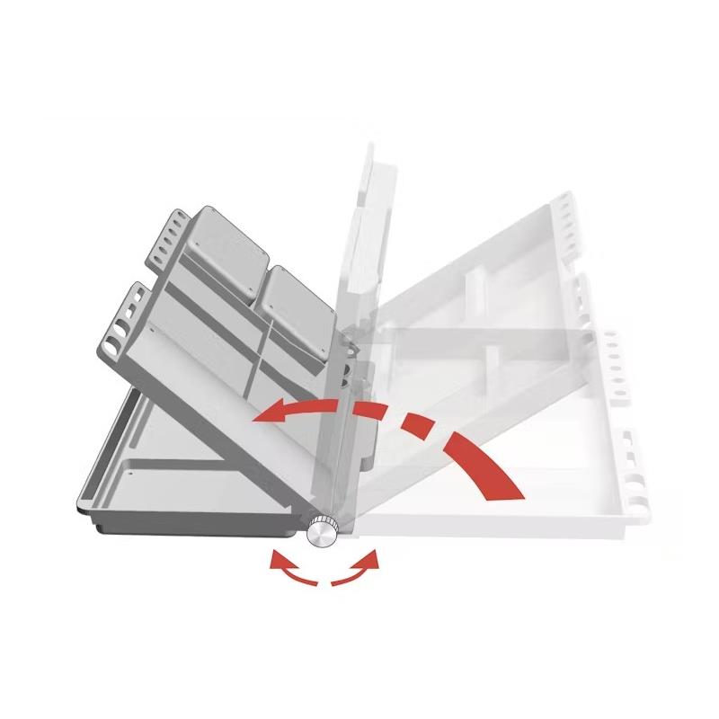 Bandeja porta-isca leve e dobrável estudada para os pescadores mais exigentes. Sua estrutura em plástico muito resistente é perfeitamente arredondada. Está equipada com várias divisões para caixas de iscas. Suas características tornam esta bandeja uma bancada de trabalho completa. Fixação central com parafuso de metal.