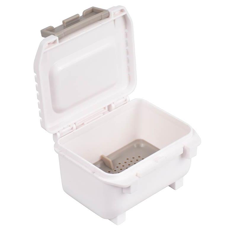 • Duplo fundo perfurado para manter as iscas secas