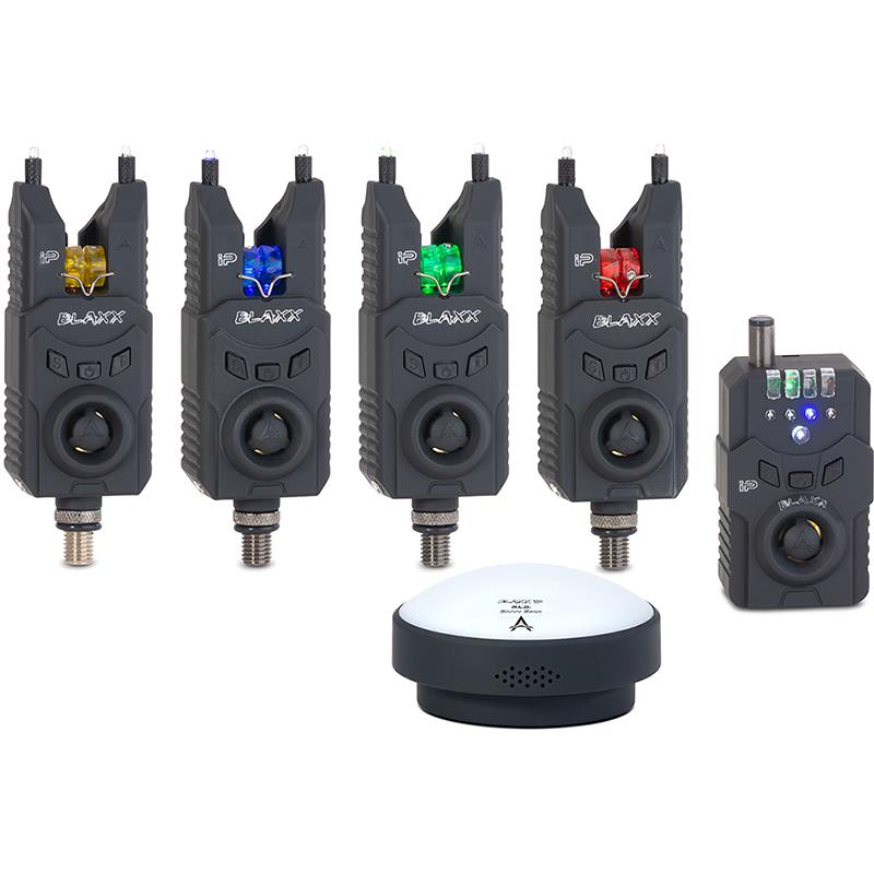 Características do Receptor Blaxx IP: • Transmissão 1:1 • Indicação clara da mordida caindo com um sinal de 20 segundos Uma LED vermelha acende • A LED branca pisca na mordida (20 segundos) e a respectiva cor do indicador de toque ativo acende 20 segundos depois • Speaker poderoso • Alarme vibratório sem som com transmissão 1:1 • 7 definições de volume diferentes + modo silencioso/vibratório • 8 diferentes alturas • Caixa Soft Touch à prova de água e anti choque • Alimentado por 2 pilhas AAA de 1,5 V (não incluídas)