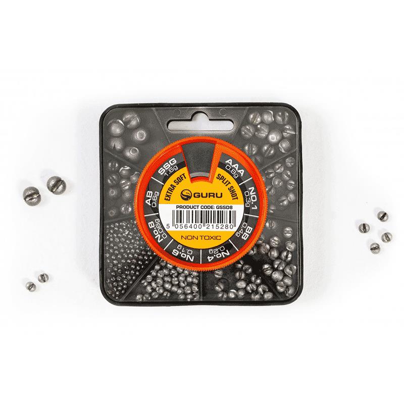 O dispensador compacto de chumbos de 4 ou 8 compartimentos Guru é uma solução prática e ecológica para armazenas e aplicares os teus chumbos. Contendo chumbos não tóxicos em uma variedade de tamanhos - AAA, BB, No4 e No6, este dispensador permite a organização e o acesso fácil ao peso exato que precisas.