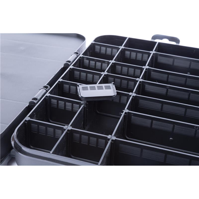 grande e profunda caixa de material, ideal para guardar os feeders mais longos e maiores, tais como bullet feeders, window feeders e bait-up feeders.