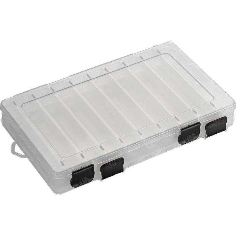 • Os compartimentos em ‘‘V’’ permitem acomodar os anzóis triplos • Arrumação perfeita que garante uma rápida mudança de isco em ação de pesca • Caixa dupla que se abre em cada face para uma maior arrumação • Modelo com dimensões de 27 x 16 x 4,3 cm, compatível com muitos "tours" e estojos de arrumação para caixas de plástico • Fabricado em França