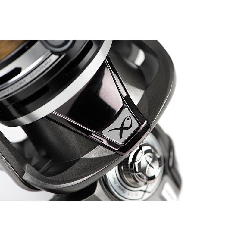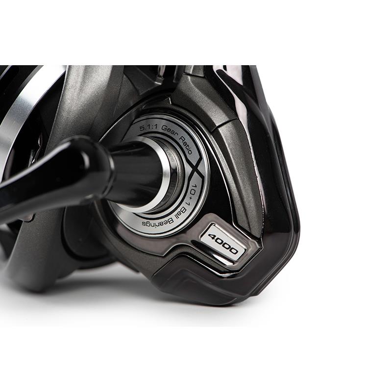 HX Pro Reel 4000 • Projetado especificamente para competições de pesca • 10+1 rolamentos de esferas • Rácio 1:1 • Corpo ultraleve em magnésio • Rotor reforçado com carbono • Mecanismos de transmissão em alumínio com usinagem digital, oferecendo robustez e longevidade • Quadro com triplo vedamento TLS • Sistema de freio multidisco SDX • Alavanca de recuperação monobloco elegante • Carretel de fácil acesso • Capacidade de 150m de Ø24mm • Recuperação de 86cm por volta da manivela • Peso 298g