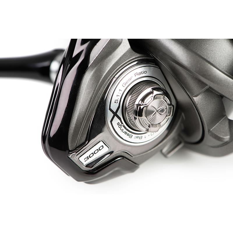 HX Pro Reel 3000 • Projetado especificamente para competições de pesca • 10+1 rolamentos de esferas • Rácio 1:1 • Corpo ultraleve em magnésio • Rotor reforçado com carbono • Mecanismos de transmissão em alumínio com usinagem digital, oferecendo robustez e longevidade • Quadro com triplo vedamento TLS • Sistema de freio multidisco SDX • Alavanca de recuperação monobloco elegante • Carretel de fácil acesso • Capacidade de 150m de Ø22mm • Recuperação de 79cm por volta da manivela • Peso 291g