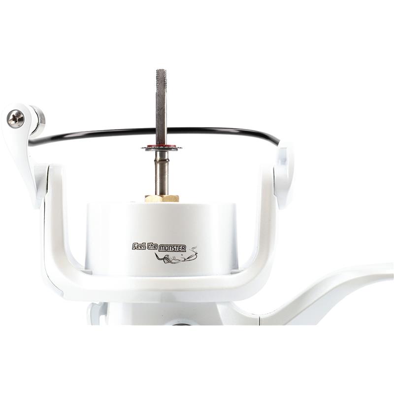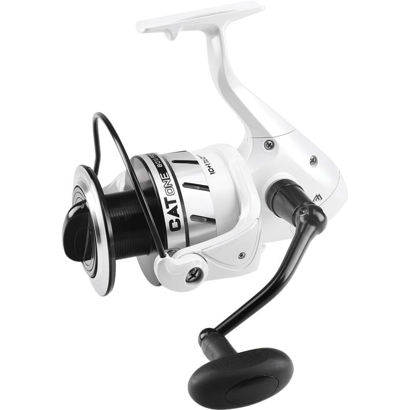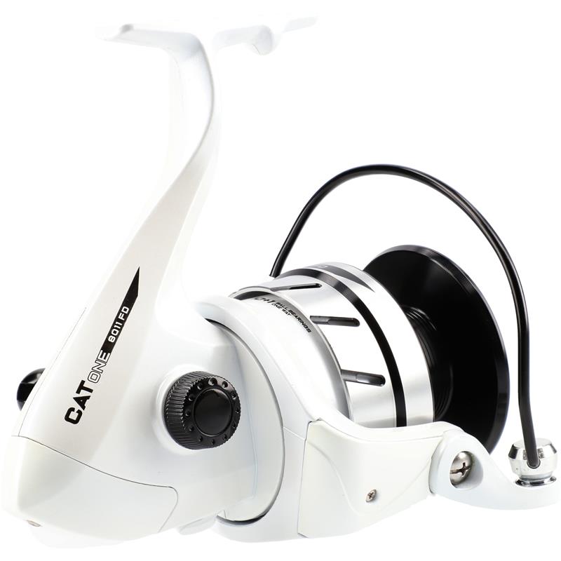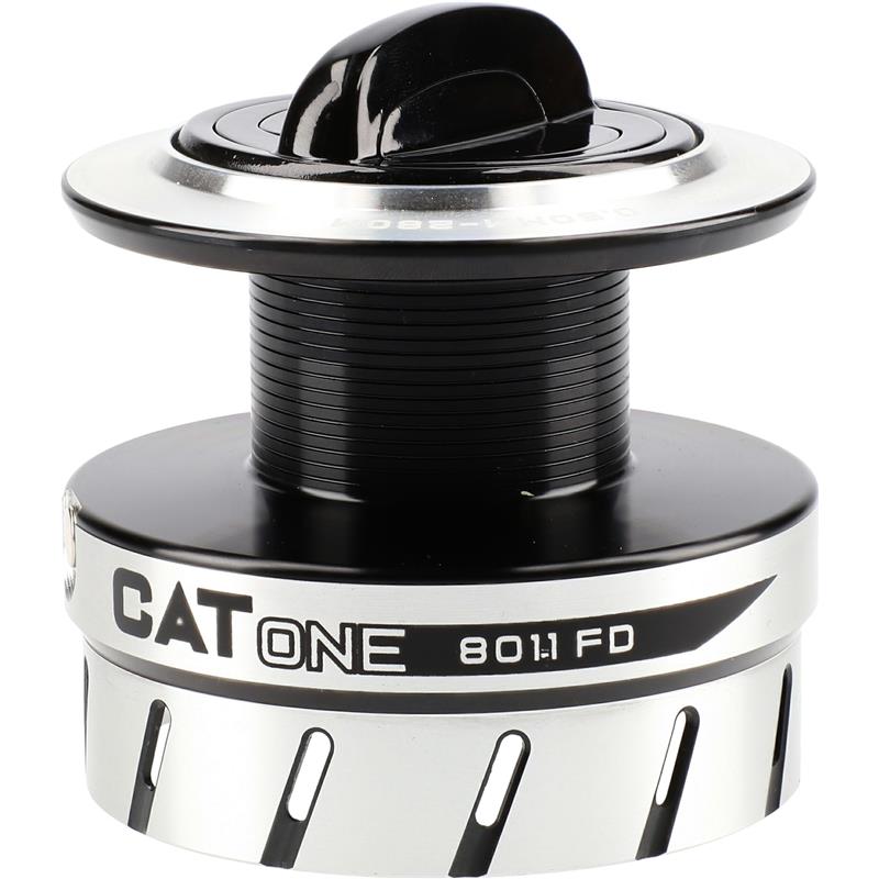 O Cat One é um carreto específico para a pesca de siluro a partir da costa: tamanho 80, 11 rolamentos de esferas, bobina de alumínio de grande capacidade (440m de 40/100), travão dianteiro com anilhas de carbono.