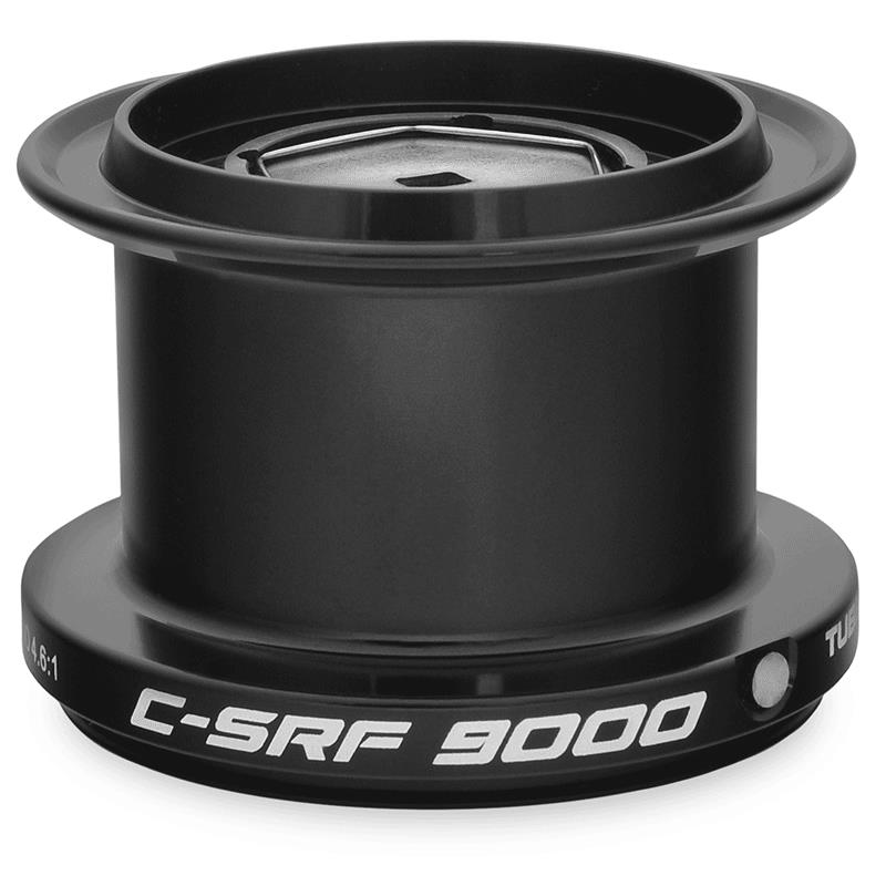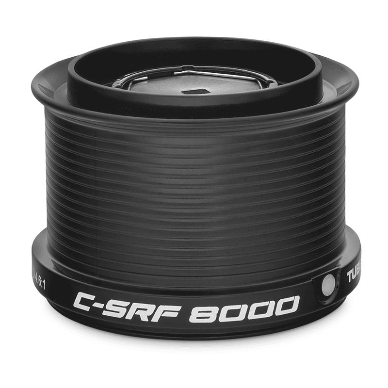 Corpo inteiramente em carbono para este cativante molinete de surfcasting de alta gama. Para reduzir ainda mais o seu peso, monta um carretel em alumínio ultraleve de tamanho 8000, com disco de travão em carbono. Dispõe também de dois outros carretéis de reserva: uma versão em alumínio liso de tamanho 9000 e uma em plástico de tamanho 8000, para dispor de diâmetros ou de linhas diferentes. Com uma recuperação muito fluida, está equipado com seis rolamentos de esferas mais um rolete e com uma relação de transmissão de 4,6:1. A manivela robusta está montada num botão EVA confortável.