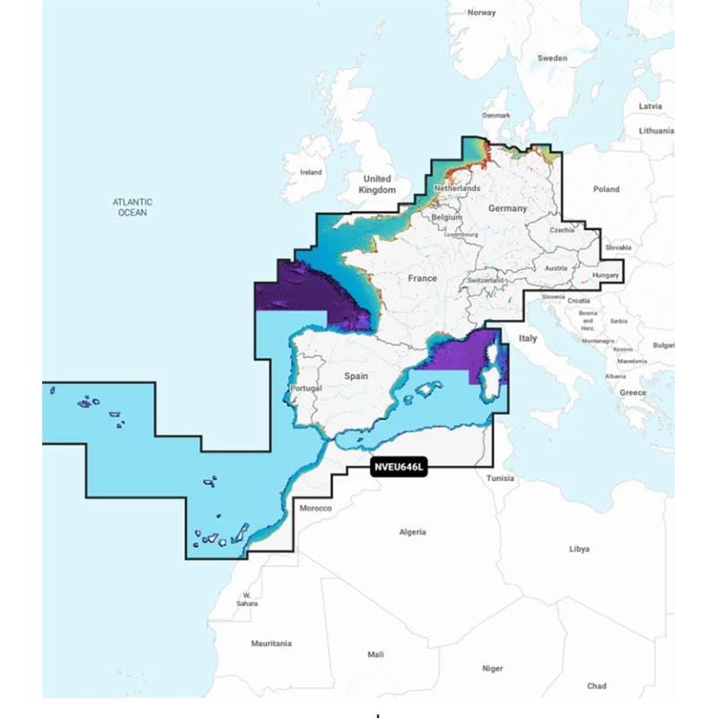 Cartão GARMIN NAVIONICS VISION+ Europa, Central e Oeste com batimetria de alta definição