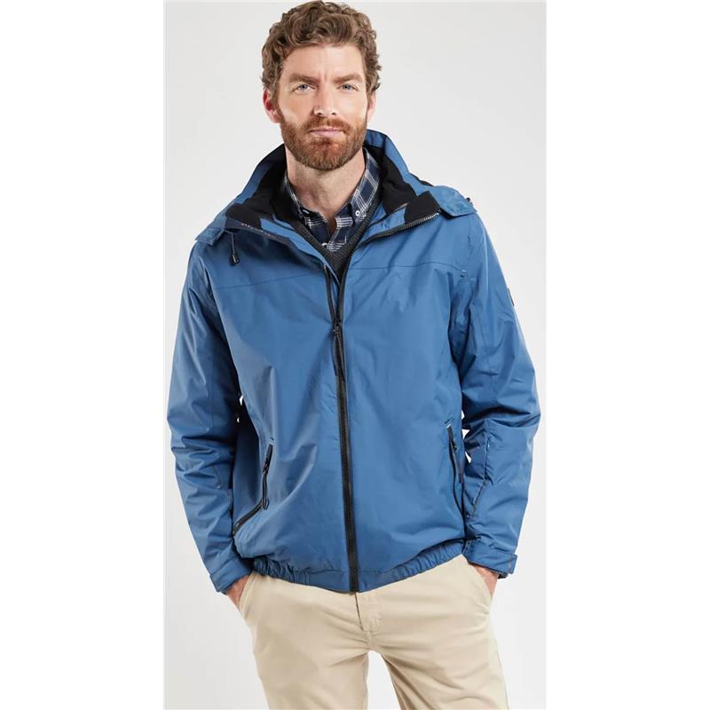 Características: • Material impermeável e respirável • Tratamento repelente à água • Costuras impermeáveis • Abertura frontal com zíper • 2 bolsos inferiores com zíper - 5 bolsos, 4 deles com zíper • Gola alta • Capuz com cordões de aperto • Forro em rede respirável • Punhos e base da roupa elásticos • Comprimento para um tamanho L: 72 cm • Material: 100% poliamida revestida com poliuretano