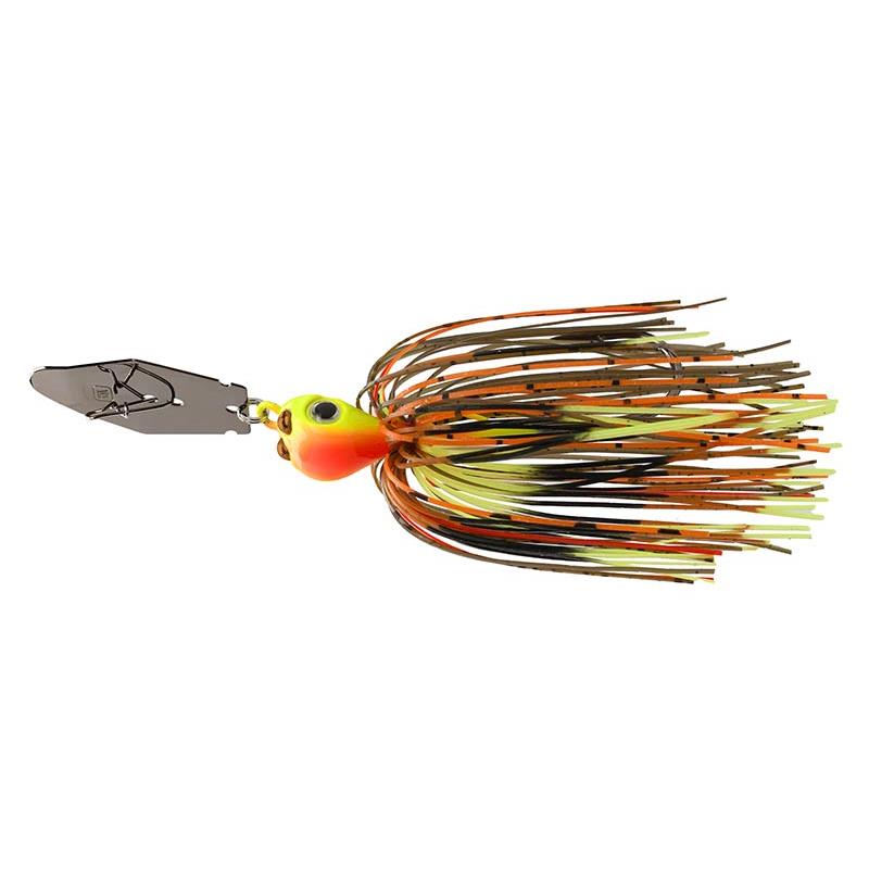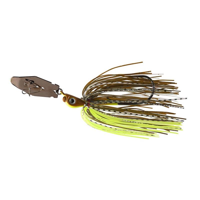 Desenhado com duas esferas de cobre fundidas na cabeça da isca, o 1st Gen Fishing Copperhead Bladed Jig é o jig vibratório mais barulhento do mercado. Quando a lâmina Copperhead oscila da esquerda para a direita, atinge as esferas, produzindo um som alto e agudo que os peixes nunca ouviram antes num jig com lâmina. O choque da lâmina contra as esferas gera um movimento de caça instável quando se dá um pequeno toque na ponta da vara ou uma volta na manivela.