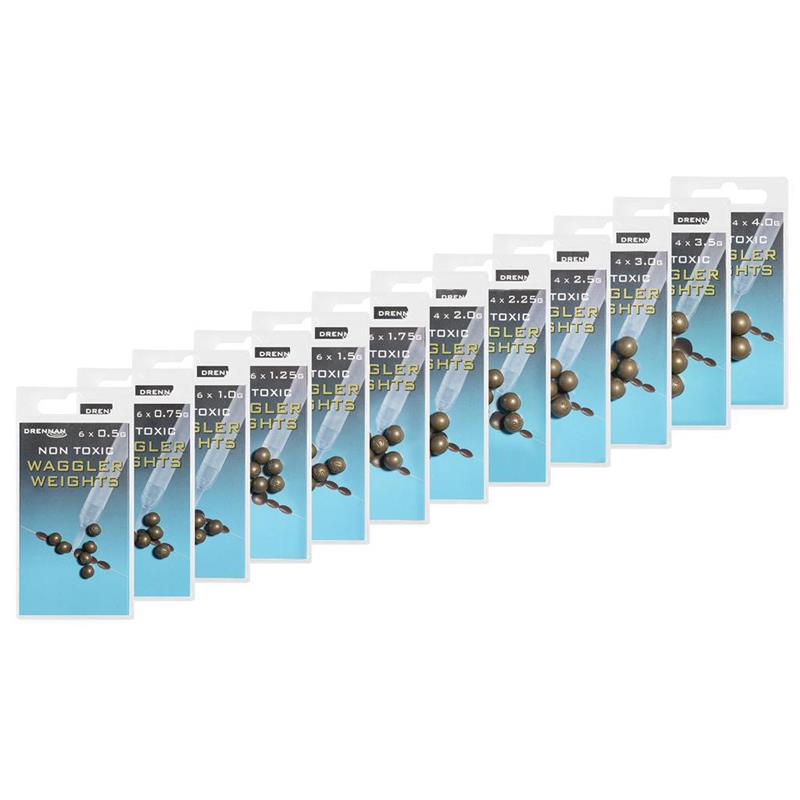 Mantidas no lugar com float stops, têm um acabamento discreto em verde azeitona, não se podem desprender da linha e permitem ajustar facilmente a profundidade. Uma vez que lançam muito melhor e não afundam tão profundo quanto os flutuadores de chumbo, estas esferas de chumbo Waggler, concebidos com precisão, representam um avanço significativo.