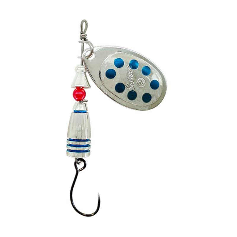 A sua paleta prateada, adornada com pontos azuis, cria uma reflexão vibrante na água, estimulando assim a agressividade dos predadores. Esta colher é ideal para pescar tanto em rio como em lago, e é perfeitamente adequada para os amantes da pesca de truta, lúcio ou perca.