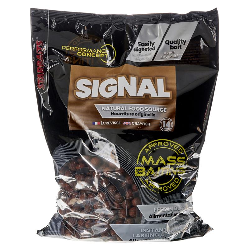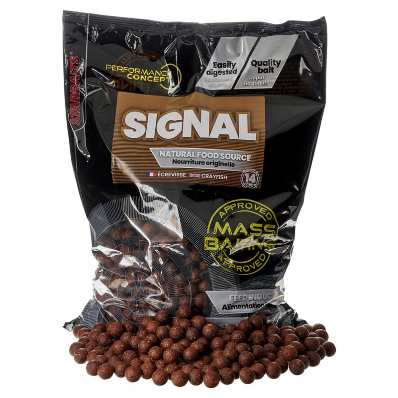 Enrolada com grande rigor de qualidade, esta boilie 100% natural foi formulada para responder às exigências dos pescadores que procuram uma vantagem decisiva em águas ricas em alimento natural! Concebida a partir de matérias‑primas de alta qualidade extraídas de elementos que compõem o meio natural tais como: écrevisses; gammares; vermes de lama... associadas a casca de ostras e de ovos de forma a reproduzir um efeito crocante detectado pelas carpas e analisado como um verdadeiro estímulo à alimentação, a « SIGNAL » pode desde já ser comparada a uma fonte de alimentação natural! Associada a determinados extratos solúveis bem como a especiarias reconhecidas por serem estimulantes para as carpas, a « SIGNAL » demonstrou rapidamente nos testes que era instantaneamente assimilada como uma fonte de alimento natural e, por isso, podia ser utilizada em qualquer estação, seja no ponto ou mesmo em amorceamento de longa duração.