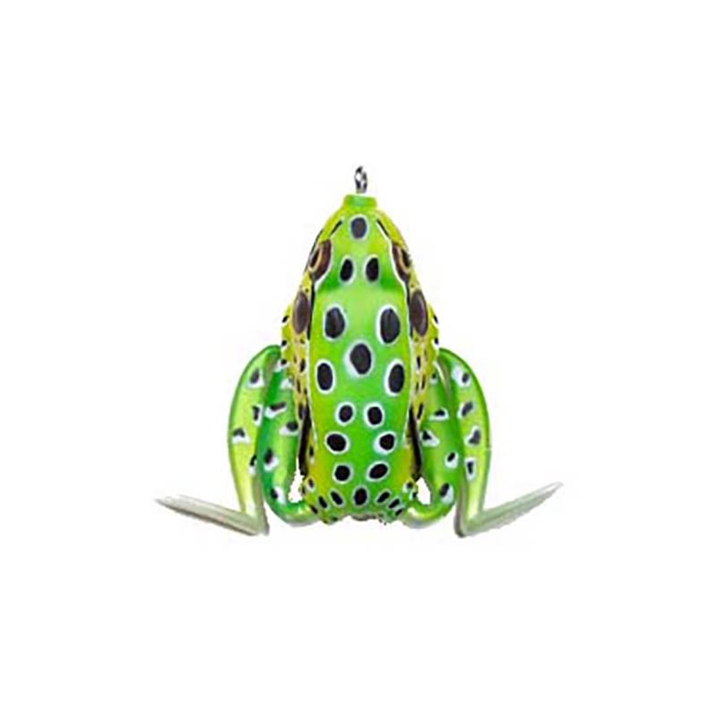 Mais verdadeiro que a natureza, as pernas deste bonito sapo flutuante esticam quando puxadas e voltam contra o corpo quando param, efeito garantido nos black bass e nos piques! Graças à montagem especifica dos anzóis, o Kaeru LIVE passa em qualquer lugar sem risco de engate, a flexibilidade do corpo libera os anzóis no toque.