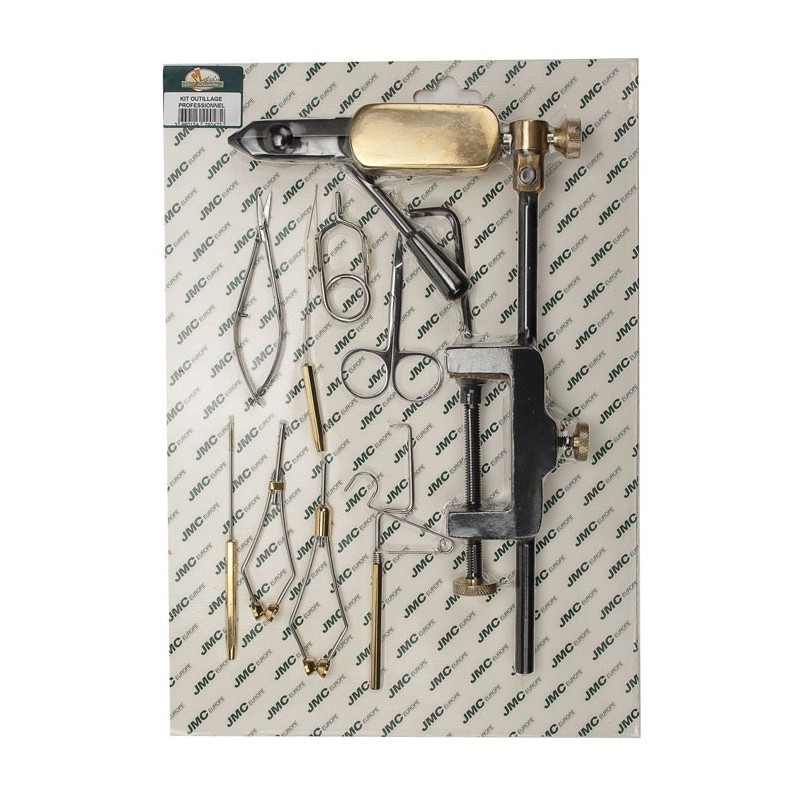 Este kit inclui as 9 ferramentas essenciais para montar moscas, incluindo: um torno profissional, um suporte para bobina tubo fino, um suporte para bobina flair, um wip finish english, uma pinça para hackle grip, uma tesoura média standard, uma tesoura spring direita, uma agulha para dubbing e um passa-fio. Veja o detalhe das ferramentas no zoom.