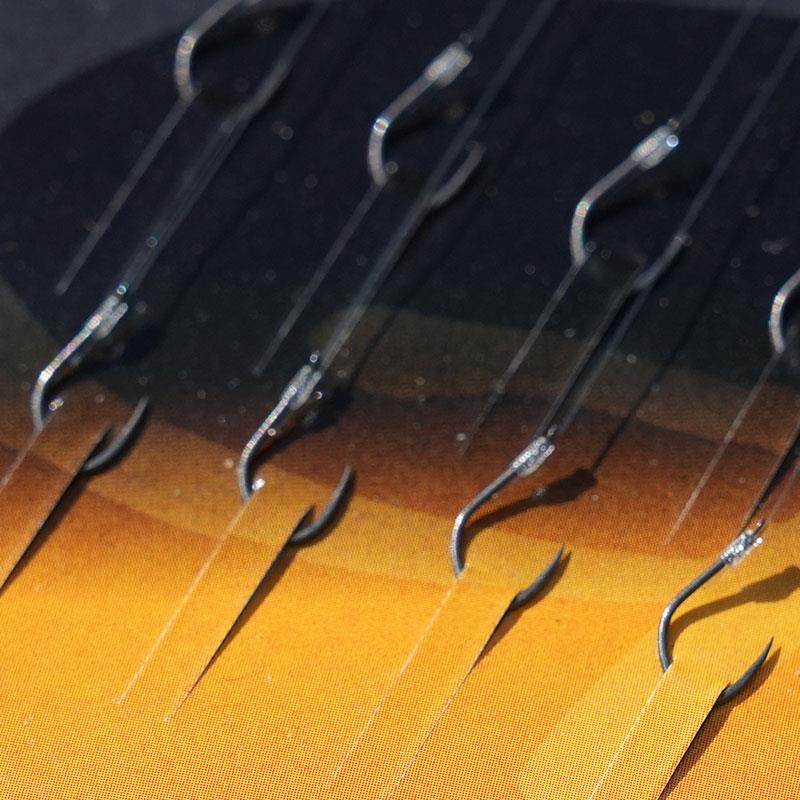 - Equipado com anzóis de alta qualidade Gamakatsu, reconhecidos pela sua excelente penetração e robustez.