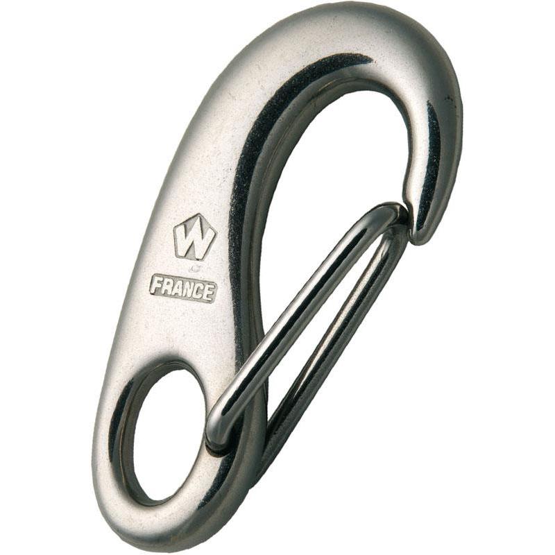 O mosquetão usa, claro, a famosa mola de torção patenteada pela Wichard e o design permite uma abertura fácil com apenas uma mão.