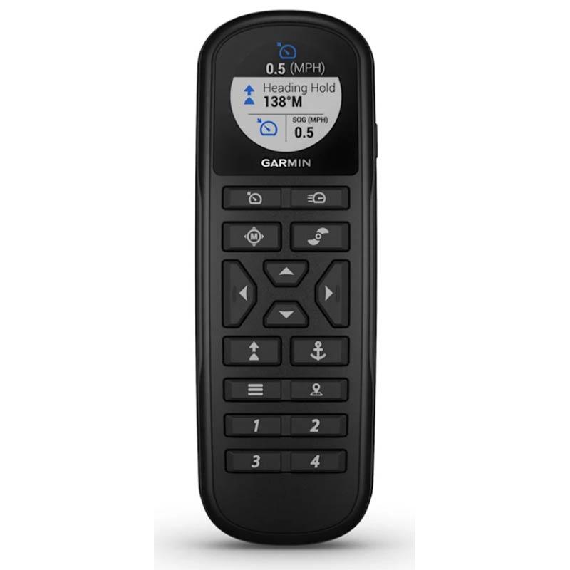 Características do controle remoto: • Tamanho do ecrã = 30,2 mm (1,2?) de diâmetro • Resolução do ecrã = 240 x 240 pixels • Tipo de ecrã = Cor, antirreflexo, MIP (memory-in-pixel) transfletivo • Teclas programáveis no localizador = SIM • Controle das funções do piloto automático = SIM • Resistência à água = IPX7 • AUTONOMIA = Utilização normal com iluminação baixa, 43 semanas • Flutuante = SIM