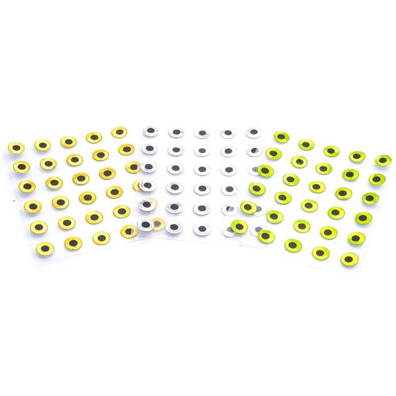 Olhos adesivos 3mm com pupila para olhos metálicos com sulco. Saco de 90 pcs (30 x 3 cores Ouro / Prata / Chartreuse).
