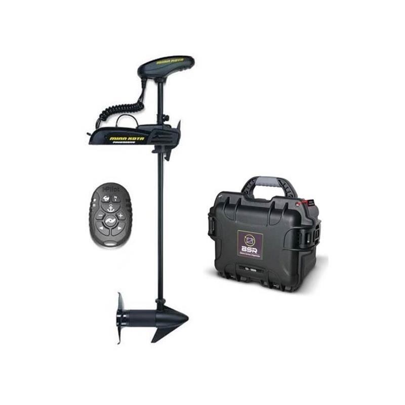 Pack composto pelo motor elétrico MINN KOTA POWERDRIVE SPOTLOCK 45LBS BT referência MK-1358792 fornecido com seu micro comando remoto referência MK-1866560 e a excepcional Bateria Lítio Lifepo4 BSR de 12V50amp para uma autonomia fora do normal vem com 1 carregador adaptado, 1 conector rápido para o motor, 1 conector rápido para o sonar e, além disso, uma saída regulada adicional para alimentar o seu sonar.