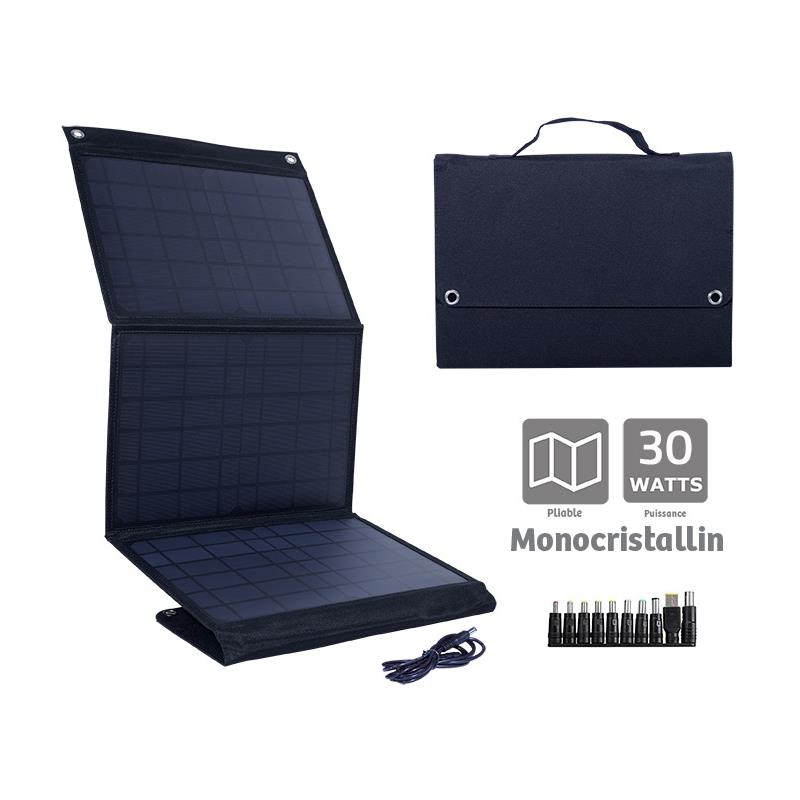 Leve, compacto, dobrável, este painel monocristalino de 30W cabe em qualquer lugar e é facilmente transportado durante as tuas viagens.