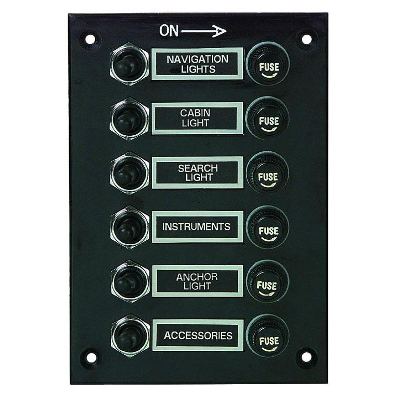 Painel de bakelite preto - 6 interruptores EUROMARINE.