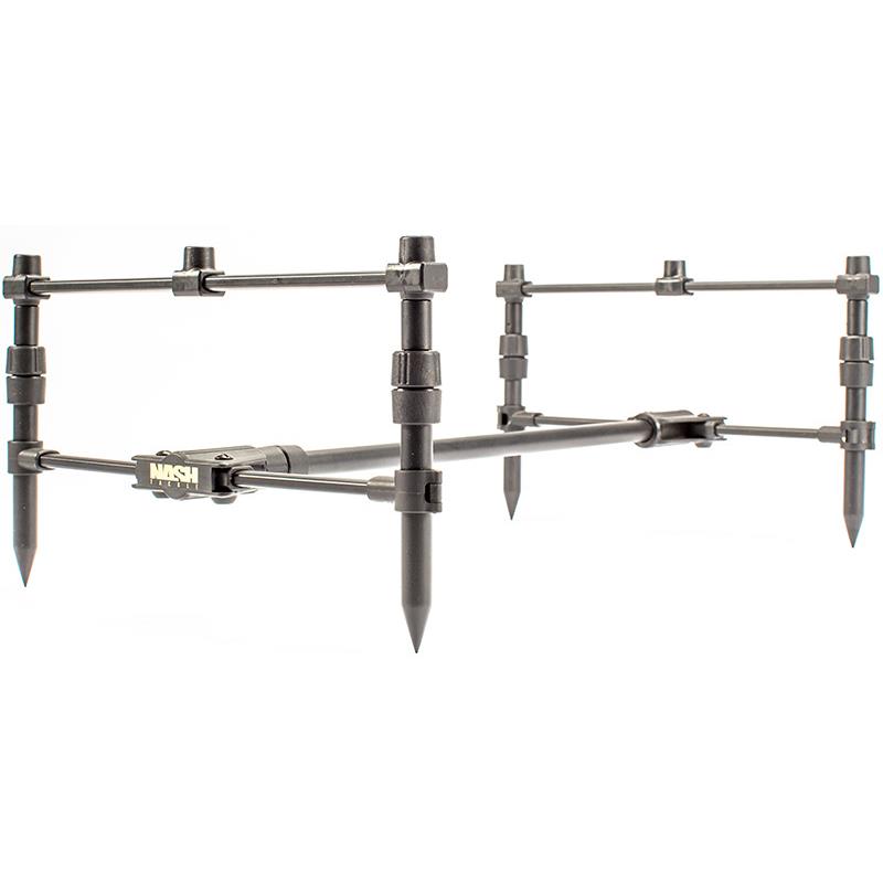 os rodpods super compactos nash pods oferecem uma solução rápida e pouco volumosa para as suas micro-sessões. barras principais ajustáveis e pés telescópicos asseguram um suporte estável em todas as superfícies, incluindo solos duros e pontões.