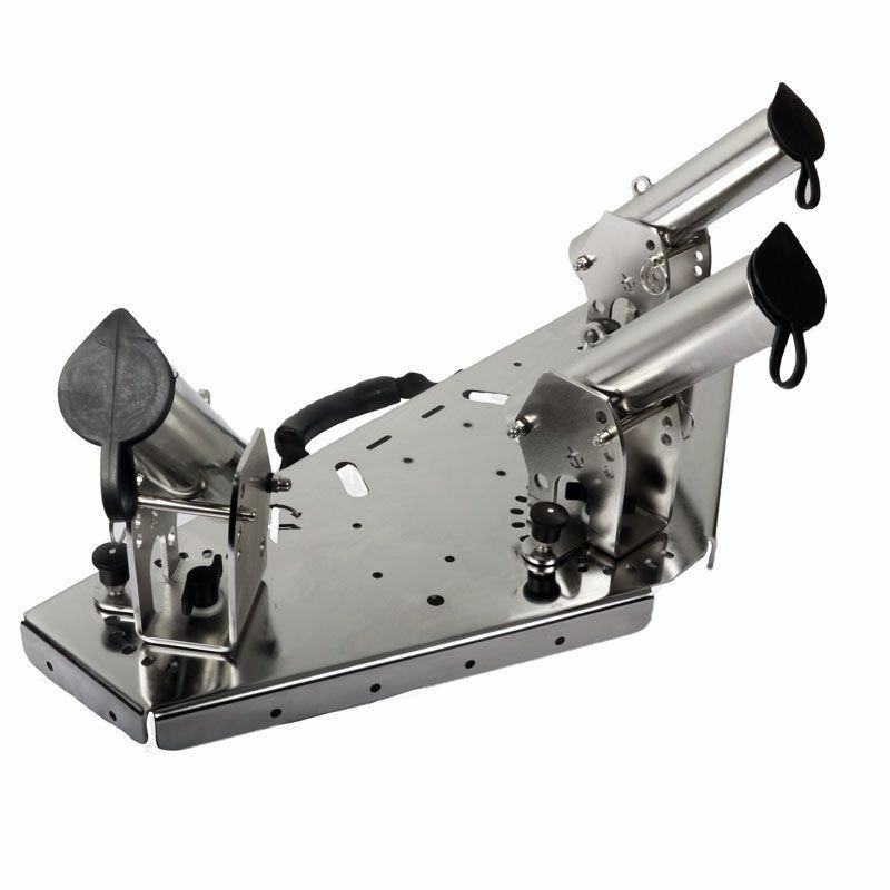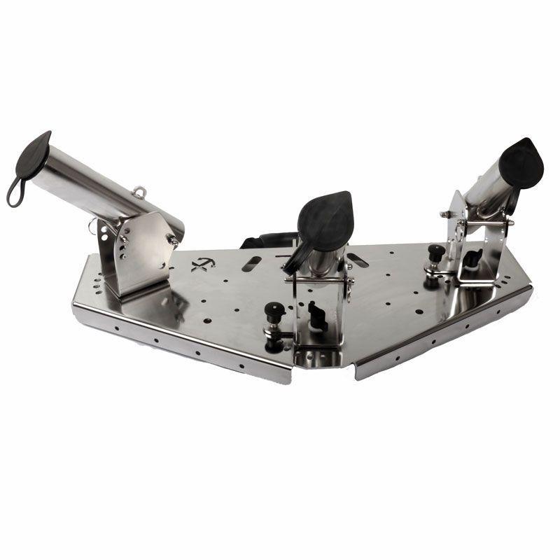Os nossos porta-canas estão equipados com um sistema rotativo, com um mecanismo de travagem rápida, oferecendo também ajustes de inclinação para se adaptarem a vários tipos de canas. Os porta-canas estão equipados com anéis de segurança e oferecem 5 ajustes de inclinação (25/35/45/55/90° para o punho de cana dobrado) bem como 13 ajustes horizontais numa faixa de 180°, com uma batente de Ø6mm para gimbal. As plataformas com 2 e 3 canas estão equipadas com uma pega de transporte para facilitar a montagem e desmontagem.