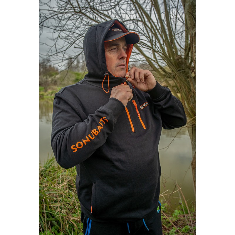 Sweat Homem Sonubaits 1/4 Zip Hoodie With Phone Pocket - Noir/Orange