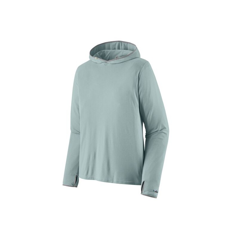 Ultra-macio, notavelmente resistente e de secagem rápida, o Tropic Comfort Natural Hoody respira e foi projetado para o desempenho na água. O seu tecido combina modal e um toque de spandex para facilitar movimentos desportivos durante os lançamentos ou no uso da rede de pesca. Oferece uma proteção solar confiável 40+ UPF, seja seco ou molhado. Os detalhes incluem um capuz pensado para cobrir um boné de beisebol e mangas ligeiramente alongadas com um buraco para o polegar em cada pulso para proteger o dorso das mãos. Feito numa fábrica certificada Fair Trade Certified™.