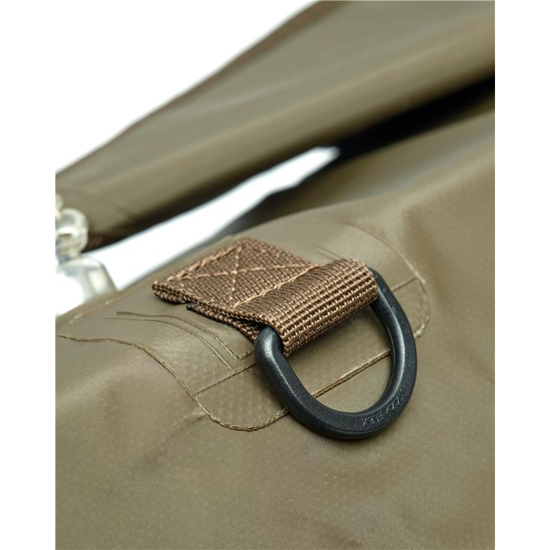 O saco de pesagem dobrável é compacto e pode ser facilmente arrumado numa bolsa ou capa, oferecendo uma solução simples e robusta para pesar todos os tamanhos e tipos de peixe. Ele tem barras de alumínio sólidas com um ponto de fixação para os teus pesos. A rede é feita de poliéster suave e tem lados com fecho para ajudar a libertar o peixe em segurança.