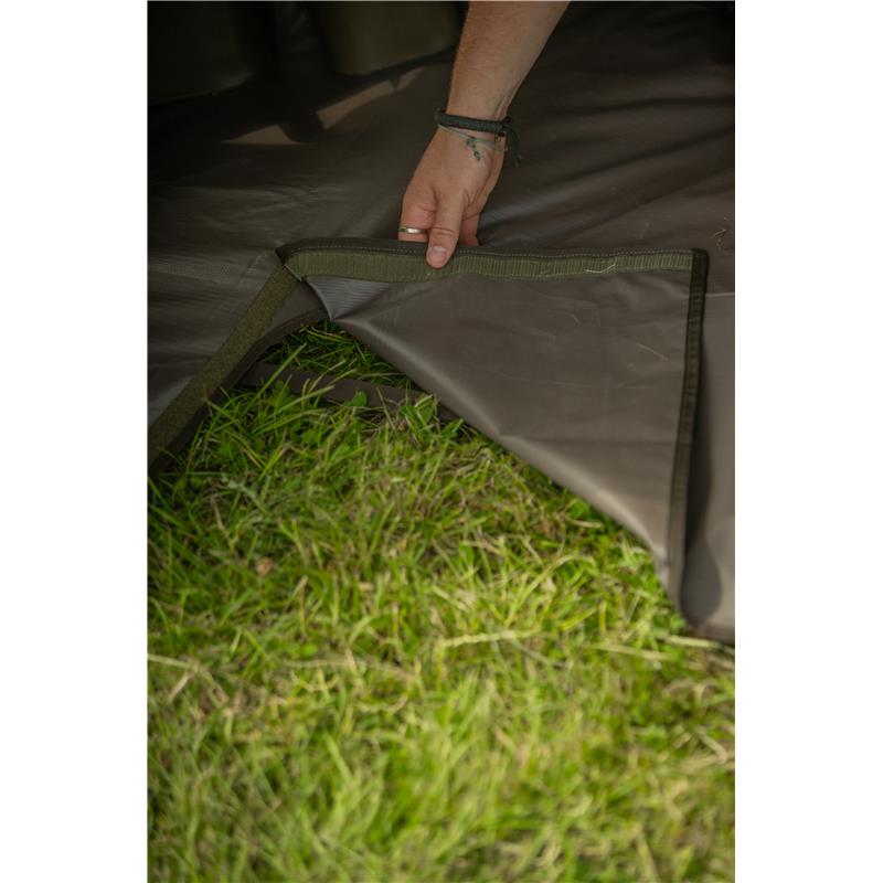 • O tapete de chão pode ser fixado em todos os cantos do bivvy.