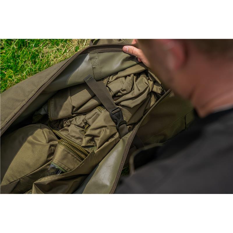 • Saco de transporte personalizado com bolso independente com fecho para as estacas, bolsa para os mastros de tempestade, bolso para o tapete de chão e clips internos para o bivvy, tudo arrumado dentro de um saco de transporte muito resistente.