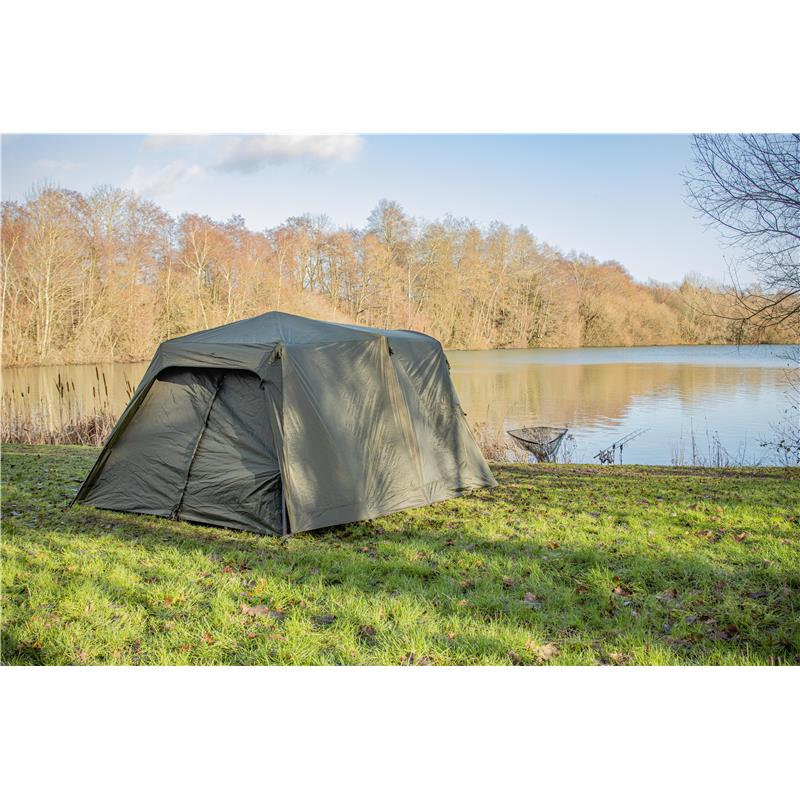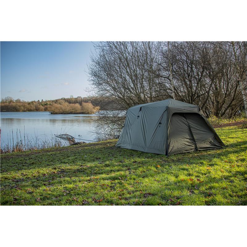 O SP Quick-Up MKII Overwrap oferece ainda mais espaço de armazenamento, abrigo e isolamento na margem, mantendo-se extremamente estável em condições ventosas. Além disso, a sua pegada quadrada permite otimizar o espaço utilizável.